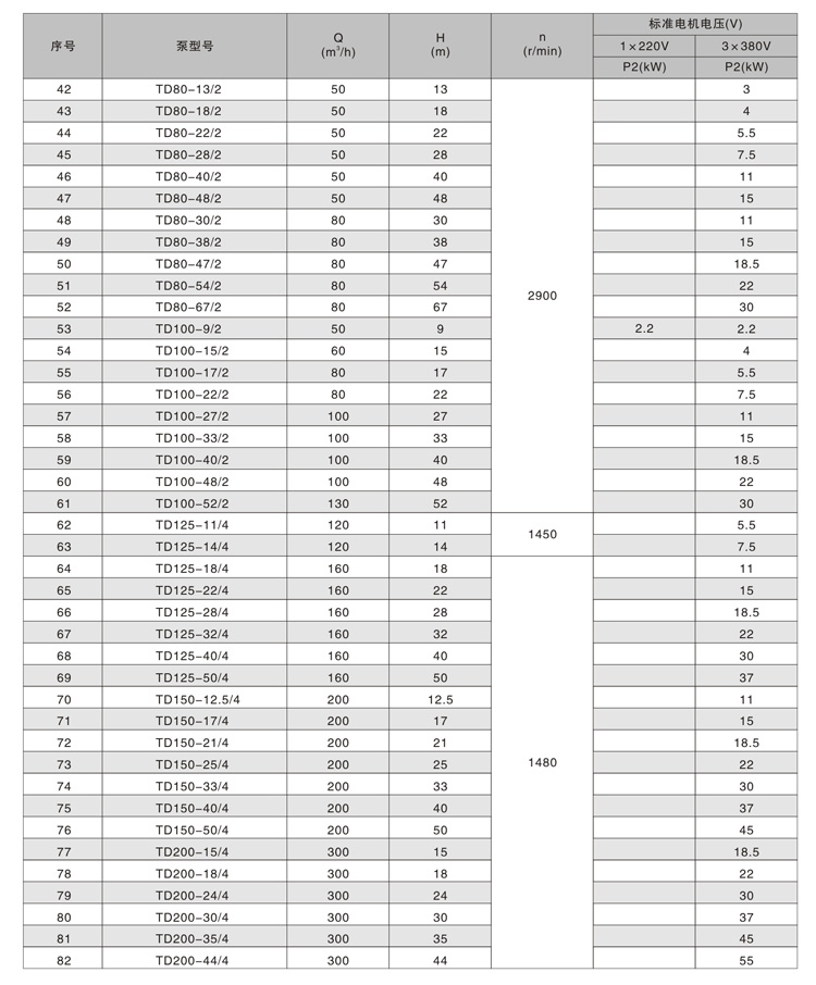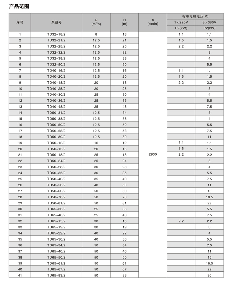 其中TD32-TD150口徑產(chǎn)品為加長軸結(jié)構(gòu),TD200-TD300口徑產(chǎn)品為便拆式結(jié)構(gòu),便拆式結(jié)構(gòu)采用集裝式機(jī)械密封,更換機(jī)械密封時(shí)無需拆卸電機(jī)。